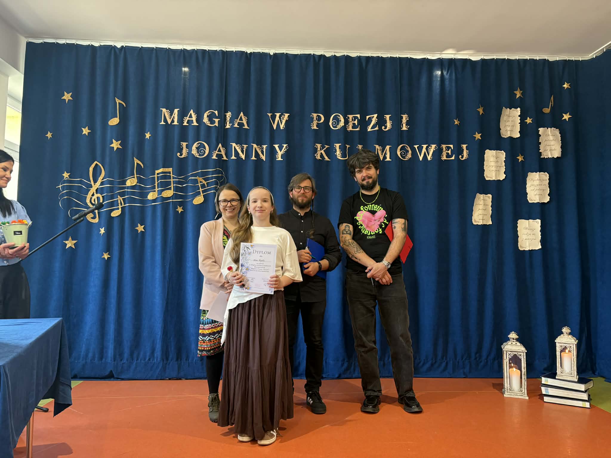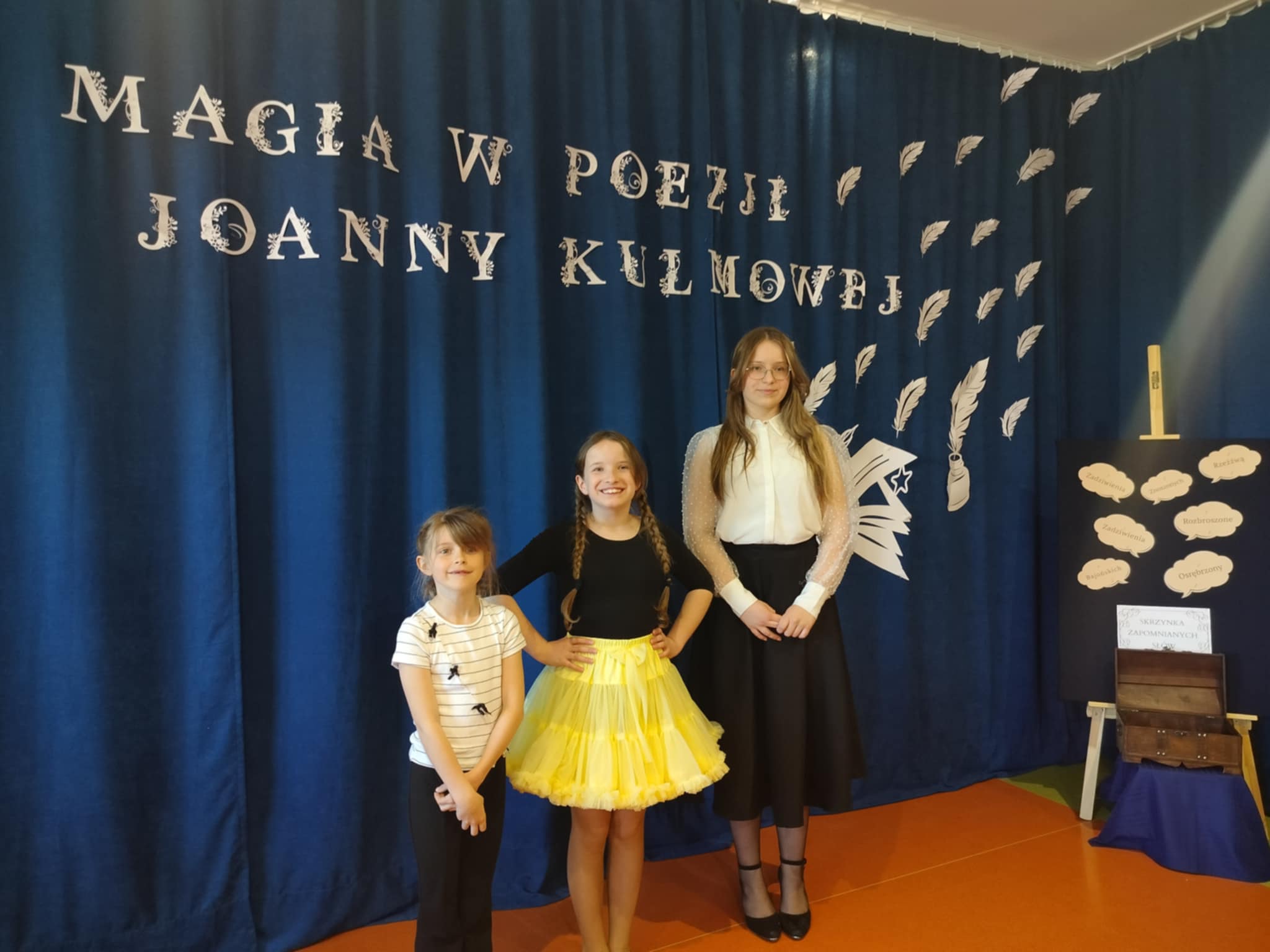 Miło nam poinformować, że Zuzanna Rogala z klasy 8 zajęła 1. miejsce w Międzyszkolnym Konkursie Recytatorskim "Magia w poezji ukryta - wiersze Joanny Kulmowej" organizowanym przez Szkołę Podstawową w Komarowie. Oprócz Zuzi na duże wyróżnienie zasługują również nasze inne reprezentantki: Oliwia Rogala z klasy 5 oraz Antonia Nagrodzka i Zofia Welcz z klasy 3b. Zuzanna, jak co roku pokazała wielką klasę, a jej młodsze koleżanki udowodniły, że ma godne następczynie. Serdecznie gratulujemy!